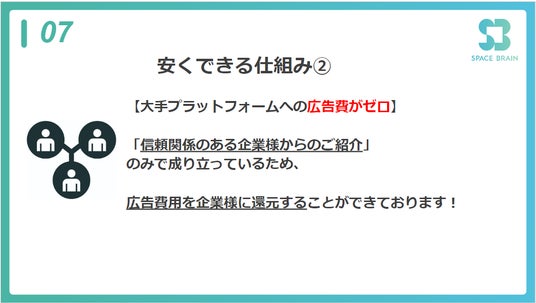 しかし私達は、信頼関係にある企業様からの紹介からによって運営されているため、その広告費用を還元することができております。