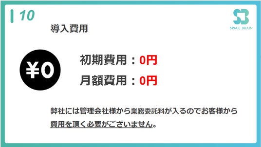 管理会社様からの業務委託料のみで運営しているため、お客様には費用負担なくご利用いただけます。