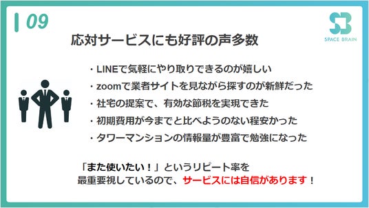 有り難いことに、対応面で多くのご好評の声を頂いております。