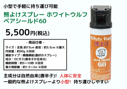 「熊よけスプレー ホワイトウルフ ベアシールド60」が新登場