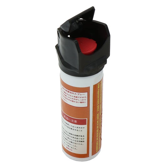 いざという時すぐに噴射出来るよう、押しやすいスプレートップに設計しております。またポケットの中などに入れて持ち運ぶときに誤って噴射されないようにカバーも付属しています。使用前に本体を振ったりする必要もありません。