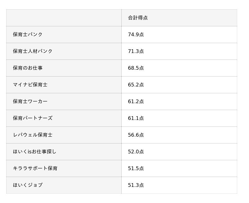 以下では、全国的に求人を保有している10点の保育士転職サイトを掲載しています。