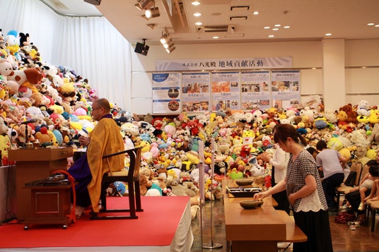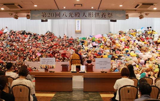 「第20回 八光殿 人形供養祭」の様子。祭壇にぎっしりと並んだお人形・ぬいぐるみは圧巻の光景。