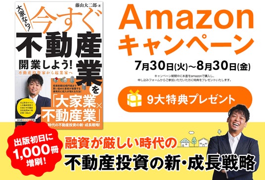 短期間で爆発的に資産を増やし、安定した不動産投資家になれる。これからの不動産投資の「新・成長戦略」である「大家業×不動産業」を、藤山が1冊の本にまとめたのが「今すぐ不動産業を開業しよう!不動産投資家から起業家へ」です。