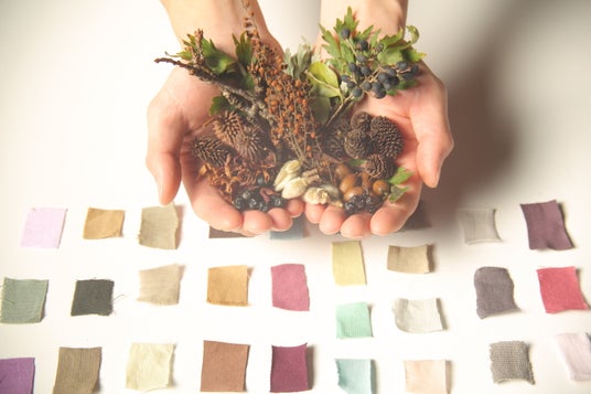 「里山パレット」は、里山の植物から抽出した色素に、少量の化学染料を加えることで、色の強度を補う「ボタニカルダイ」という手法を用いています。これによって、日本古来の草木染が持っていた、日光や洗濯によって退色しやすいという弱点をカバーし、身近な日常着として愛用できるクオリティを叶えています。植物色素が光を乱反射することで、ゆらぎのある表情が生まれるのも魅力です。