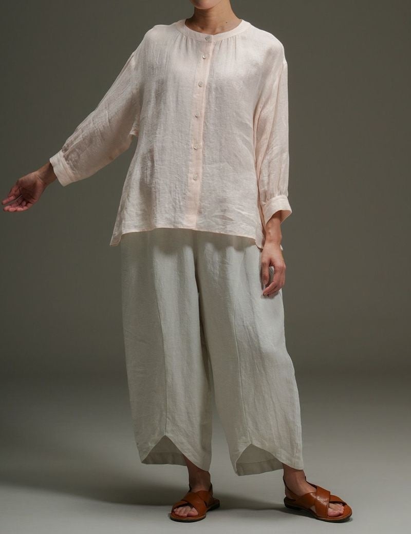 ・リネンボイルパレットギャザーブラウス / ¥35,200(税込) (色:さくらいろ、さんごいろ、ねずみいろ)