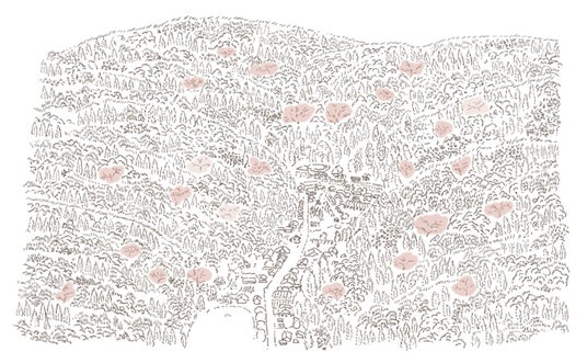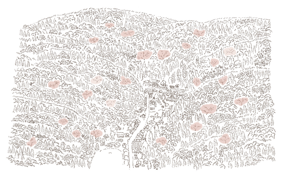 石見銀山 大森町では、町中の桜が咲き誇った後、最後に山々の「山桜」がポツリポツリと花を咲かせます。春の里山が点々と薄紅色に染まっていく様子は、古くから「山笑う」と表現され、人々に春本番の訪れを伝えてきました。 今回の「里山パレット」シリーズは、顔色も気分も華やぐ「春色」として、山桜の淡く美しい色彩を提案いたします。