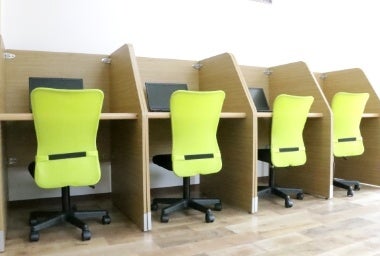 弊社B型事業所の利用者として、提携の一般企業内(出張所)での作業となります。一人ずつ専用デスクが配置されたオフィスでは、手すりやスロープも設置され、冷暖房完備の充実した作業環境となっています。