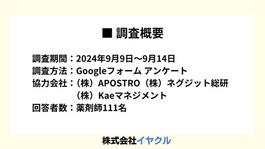 株式会社イヤクルでは、この新制度が薬剤師にどのような影響を与えるのかを把握するため、調査を実施しました。