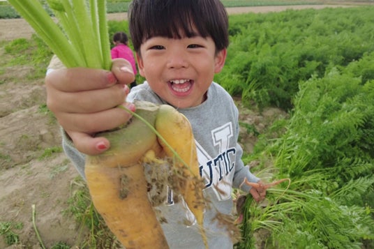 普段見られない変わった形のニンジンに大興奮(豊川市)