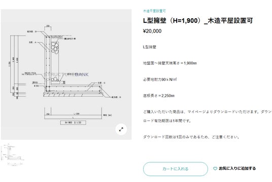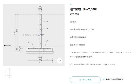 『Structure Bank-工作物』では、構造設計書類を1件あたり2万円(税抜)で販売しています。