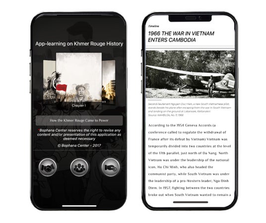 本アプリは、1975~79年のクメール・ルージュ政権とその前後のカンボジア現代史を、写真・映像・わかりやすい解説を通して学ぶことができる無料コンテンツです。2016年の初リリース以来、世界で60,000件以上ダウンロードされ、カンボジア国内では高校・大学の教育現場で広く活用されてきました。