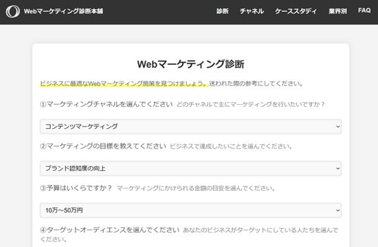 これにより、Webマーケティングの知識が全くない方でもビジネス目標を達成するためのマーケティングのヒントを得ることができます。