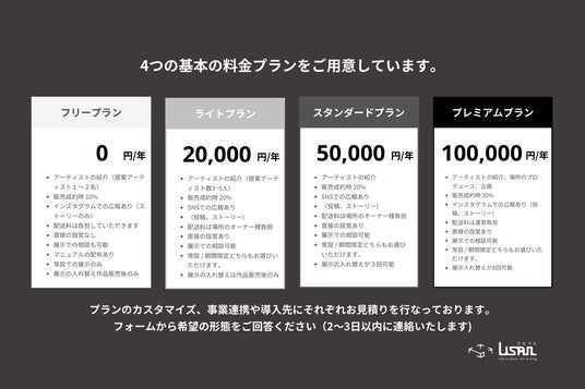 プランごとで展示する作品数や、展示の入れ替えなどがカスタマイズできます。