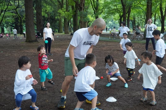 ジム、子供向け運動教室を運営する株式会社Grit Nationとのタイアップイベントでした。ボールを投げるだけではなく、みんなのティシャツにカラーペイントをつけるという目的を持ってボールを投げたり、走り回ったりすることで運動機能の上昇と世界にひとつだけのオリジナルティシャツを製作しました。