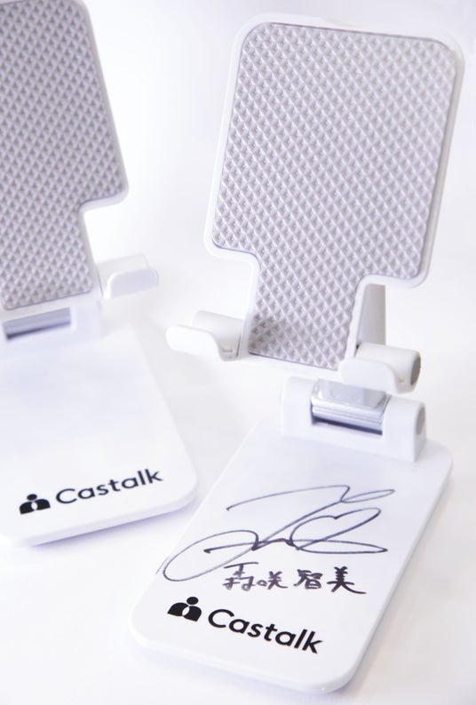 森咲智美アバターの実装を記念し、2025年5月7日~5月20日の期間中、特別キャンペーンを実施いたします。キャンペーン期間中に14日間連続で森咲さんのアバターとビデオチャットを楽しんだ方の中から、抽選で10名様に森咲智美さん直筆サイン入りスマホスタンド(写真参照)をプレゼントいたします。アプリ内の案内に従ってエントリーのうえ、ぜひこの機会に“AI森咲智美”との対話をお楽しみください。