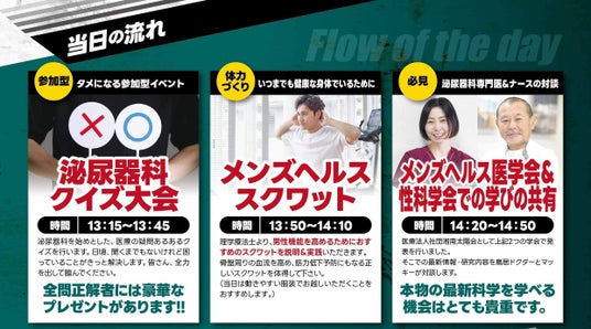 泌尿器科に関するクイズ大会: 楽しみながら、泌尿器科の受診が怖くなくなるような男性特有の健康問題について知識を深められるクイズを実施します。優勝者には豪華プレゼントもご用意!