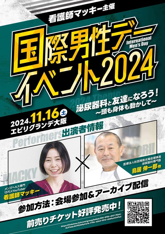 YouTube登録者13.8万人超の【メンズヘルス専門チャンネル】看護師マッキーが、11月19日の国際男性デーに合わせ、11月16日(土)大阪で男性更年期障害予防の特別イベントを開催します。