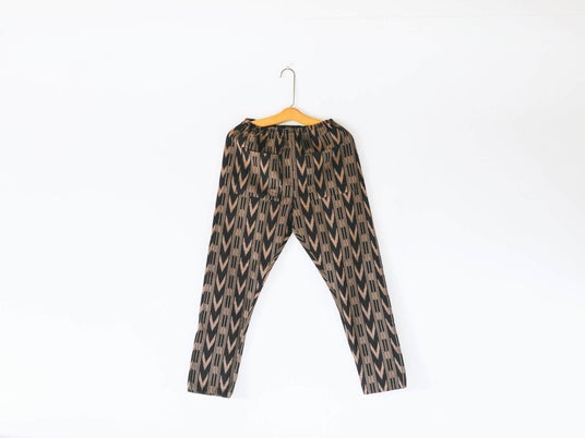 久留米絣は、福岡県に伝わる伝統的な織物。肌になじむやわらかさ、通気性のよさ、そして長く使える丈夫さ。定番のシルエット・仕様はそのままに、柄だけをオリジナルで仕立てたもんぺは、初めての方にも、リピーターの方にも心地よく履いていただけます。