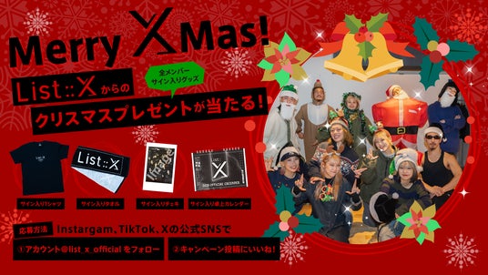 横浜発のプロダンスチーム「List::X(リストエクス)」は、D.LEAGUE 24-25 SEASONより新規参入し、ROUND.1では惜しくも悔しい敗退をしましたが、ROUND.2およびROUND.3で見事な勝利を収めるなど、着実に成長を続けています。チームが成長できるのも、ファンの皆さんの声援のおかげです。List::X初となるクリスマス時期の12月5日~12日の期間で、ファンである「リスター」へ日頃の応援の感謝をお返しするキャンペーンを実施いたします。