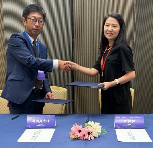 調印式:2024年 9月12日ホテルニューオータニ東京 左:ディファレント社 代表取締役 亀山亮太 右:REACH24H社 副総経理 李婷婷