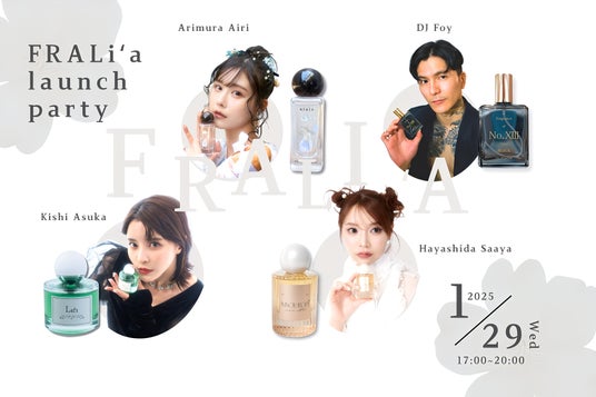 株式会社Momentum Youth(本社:東京都品川区、代表:林田聡一朗)は、フレグランスのトータルコーディネートサービス「FRALiʻa(フレリア)」の新作香水発表を記念し、2025年1月29日(水)にFRALiʻaローンチパーティーを開催いたします。この特別なイベントには、フレグランスプロデュースを手掛けた岸明日香さん、有村藍里さん、林田沙綾さん、DJ ふぉいさんが登場し、それぞれがデザインした香りをお披露目いたします。