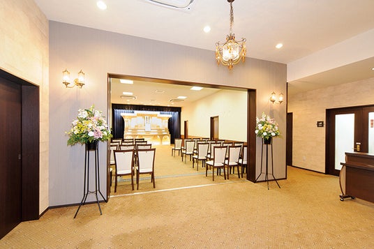 古来からの日本のお葬式の色「白」を基調とした葬儀式場:桜山斎場エニシア