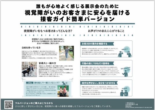「視覚障がい者おもてなしハンドブック」の最初の1ページを展示会でご利用できるよう、接客ガイド簡単バージョンとしてご用意いたしました。下記リンクからダウンロードしてご利用下さい。