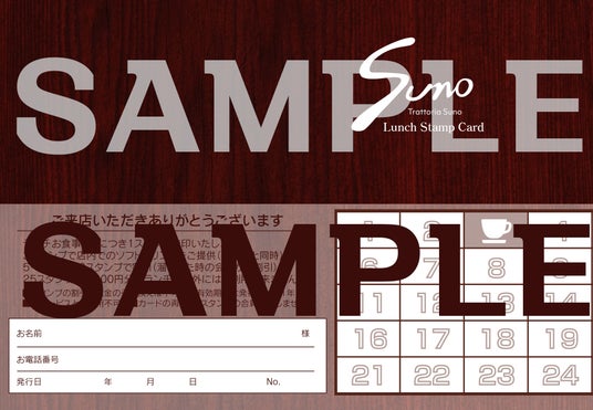 ランチタイムにご利用いただくお客様を対象に新たなサービスとして、スタンプカードを導入いたします。このスタンプカードは、ランチをご利用いただくごとにスタンプを押印し、一定の回数に達することで割引やドリンクサービスを受けられる特典をご用意しております。