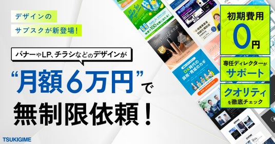 株式会社SEND NOW(代表取締役:松永年志規)は、月額6万円からバナー、WEBサイト、サービス資料、チラシなど、さまざまなデザインを無制限に依頼できるサービス「TSUKIGIME」を開始いたします。