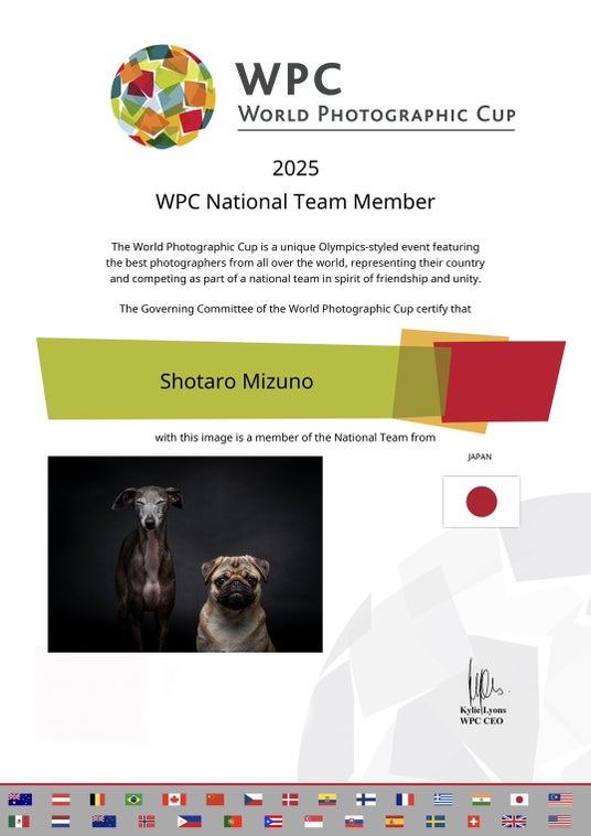 2003年生まれの水野祥太郎氏は、2024年11月に発表されたWPC2025日本代表選考において、Natural Portrait部門で代表選手に選出されました。WPCは2013年に全米プロ写真家協会(PPA)とヨーロッパプロフォト連合(FEP)の呼びかけにより始まった、プロ写真業界初の「写真における世界大会」で、写真のオリンピックとも称される権威あるコンテストです。