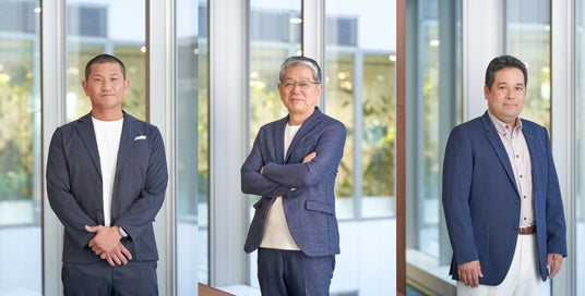 左から、減災ソリューションズの代表取締役社長:加古嘉信、最高顧問:高橋清孝、技術顧問:宮里直也