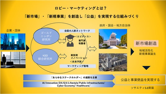 パブリックアフェアーズ事業(新しいロビー活動)を展開する株式会社ゴールド・ニッポン研究所(本社:東京都練馬区、代表取締役:松崎豊 以下「当社」)は、株式会社H2O綜合研究所(本社:東京都文京区、代表取締役:平野治、以下「H2O綜研」)と業務提携を締結いたしました。