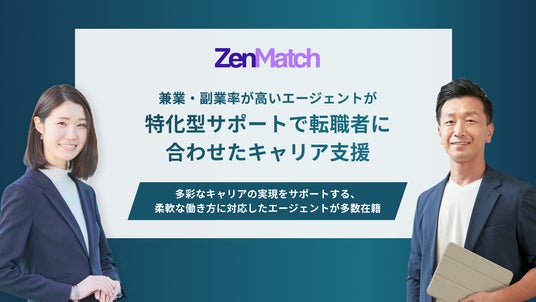 株式会社ZenX(本社:東京都港渋谷区、代表取締役CEO:後藤正宏、以下:当社)は、次世代型キャリア支援サービス「ZenMatch Agent」を通じ、柔軟な働き方とテクノロジーを活用した効率的な転職サポートを提供しています。ZenMatch Agentに所属するエージェントの兼業・副業率は業界高水準を維持しており、多様なキャリアを持つエージェントがそれぞれの専門分野に特化した支援を行うことで、転職者に最適なキャリアパスを提案しています。