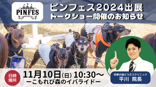 犬の皮膚病治療に特化した動物病院、四季の森どうぶつクリニックメディカルスキンケアセンター(本社:〒470-1154 愛知県豊明市/医院長・獣医師 平川 将人)は、2024年11月10日(日) 茨城県稲敷市にあるこもれび森のイバライドにて開催される、ミニピンの祭典『ピンフェス2024にて出展、トークショーへ登壇致します。