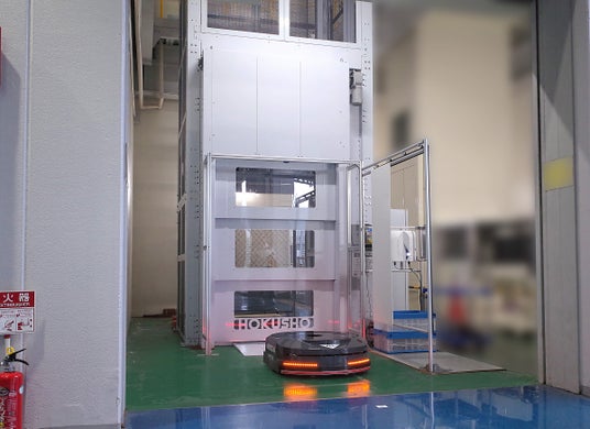 ・施設内物流等で導入が進む無人搬送車(AGV)と組み合わせることで多階層建屋での立体的な自動搬送を実現