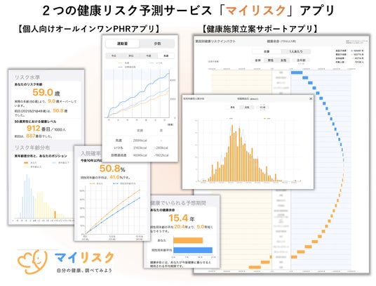 入院確率や健康余命など多様な健康リスクを予測し、延べ70万超のユーザ数を有する「マイリスク(R)︎」から、二つのアプリがリリースされます。