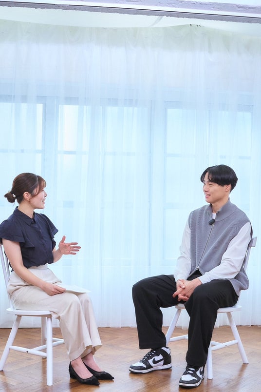 ルミエプラス代表島田(左)と対話する内尾選手