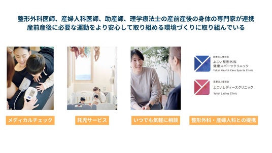 産前産後の方に安心して利用していただけるよう、大学や医療機関と連携をしながら科学的エビデンスを研究・検証し、産前産後の時期に必要な運動を提供しています。