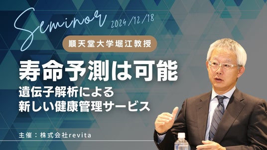 株式会社revita(本社:東京都中央区、代表取締役:山本雄一郎、以下revita)は、OCA TOKYOにて順天堂大学病院の堀江重郎教授を講師に迎え、「創造長寿」をテーマとした医学講演会を開催しました。本講演では、遺伝子解析技術を活用した健康寿命の延伸や老化抑制に向けた最新技術について、堀江教授による臨床事例を交えた解説が行われました。その後、当社代表が最新技術を活用した健康管理サービス「revita」の紹介を行いました。さらに、本講演にはrevitaのドクターチームの一員であり、人間情報解析の専門家である駒澤真人准教授も参加し、多くの企業経営者や健康経営の導入を検討する企業から注目を集める場となりました。