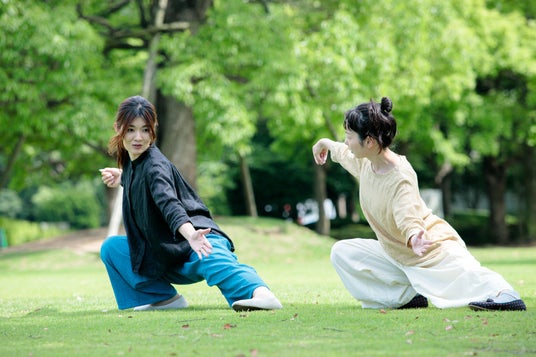 ▲屋外でも着替える必要なく太極拳やヨガができる