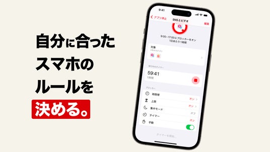 ・ 例:「仕事中の9時から17時は動画アプリを制限」など。