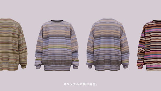 StripeTrackを活用して生成されたストライプ柄のニットアイテムやアート作品が展示されます。これらは一点もので、展示会場でしか見ることができません。
