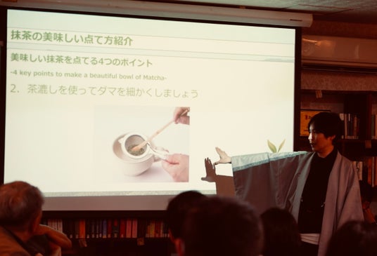 当日は、トルコの茶文化紹介(チャイ)、 日本の茶文化紹介(抹茶)、トルコチャイの淹れ方と試飲、抹茶の点て方と試飲、両国の茶文化の共通点と違い談義からなるセクションで、両国の茶文化を座学と実演形式で提供。トルコの文化に興味のある、国際交流や世界中のお茶文化に興味をもつ約40名が集い、茶文化交流を体験しました。