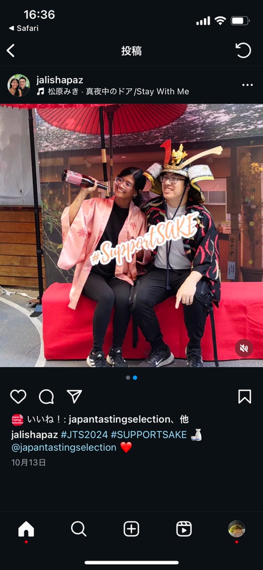 JETROがおこなっている#SupportSAKEの投稿で日本行き航空券が当たるキャンペーンなどの後押しもあり、イベントの様子をSNS投稿してもらうことができました。