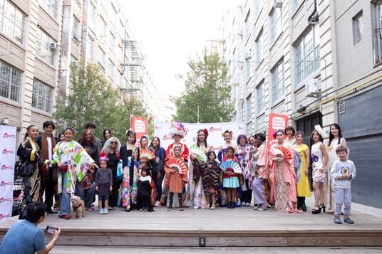ファッションショー後には来場者の方々に、明治30年創業の呉服店、銀座いわきや協賛の小袖や簡易的に着付けが出来る着物を着ていただき、着物体験をお楽しみいただきました。
