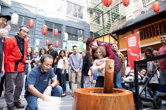 会場であるJapan Village(ジャパンビレッジ)には、休日は多くの家族連れが訪れることから、お酒を飲まない方々にも楽しんでいただけるよう、餅つきイベントを実施しました。