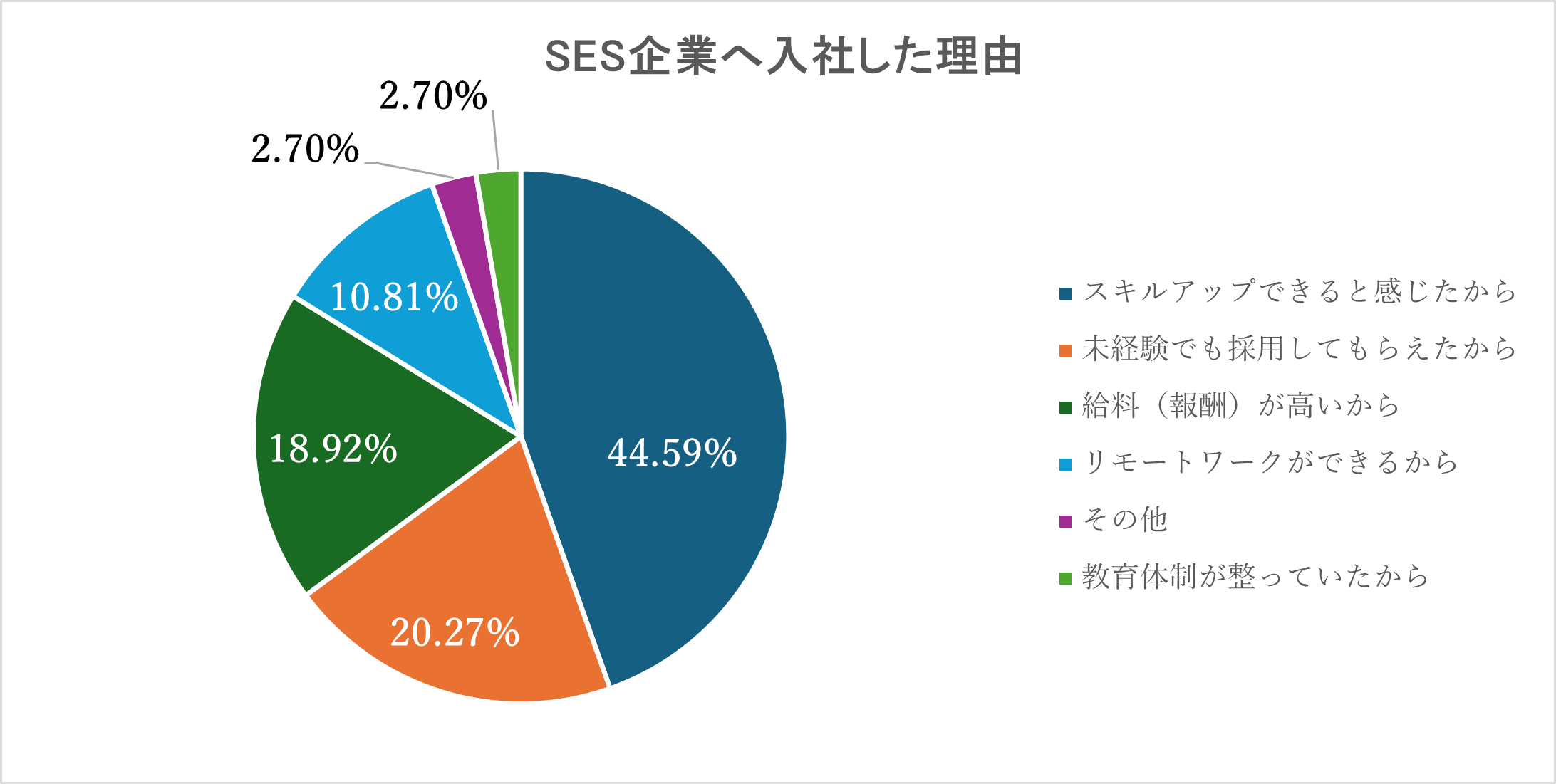 SES企業へ入社した理由は「スキルアップできると感じたから」が約45%で最多