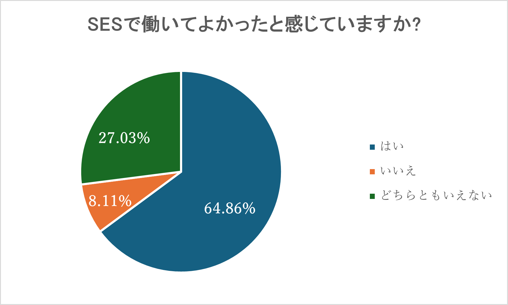 一方で、回答者の約65%が「SESで働いてよかった」と答えている反面、「採用基準と現場の求める人物像にギャップを感じた」と答えた人も約45%にのぼりました。