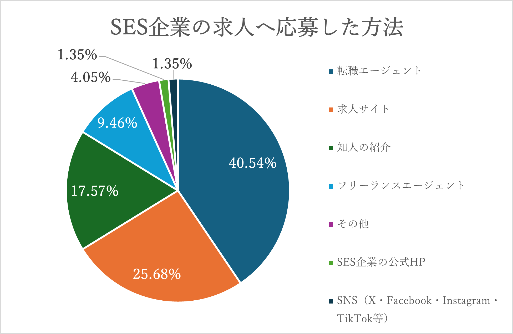 SES企業の求人へ応募した方法は「転職エージェント」経由が約40%